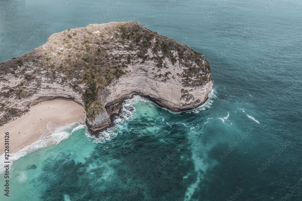 Aerial drone view of beautiful Kelingking Beach in Nusa Penida, Bali, Indonesia