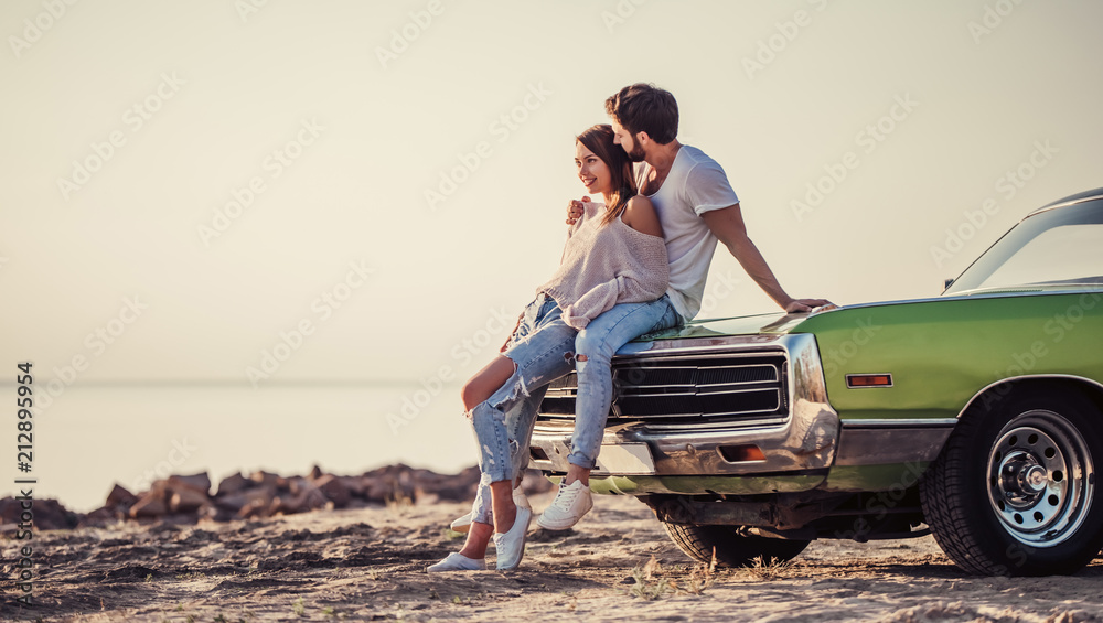 Couple with retro car