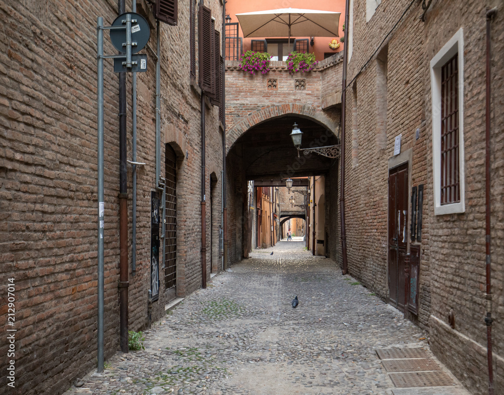 Via delle Volte of Ferrara in the medieval quarter. Emilia-Romagna. Italy.