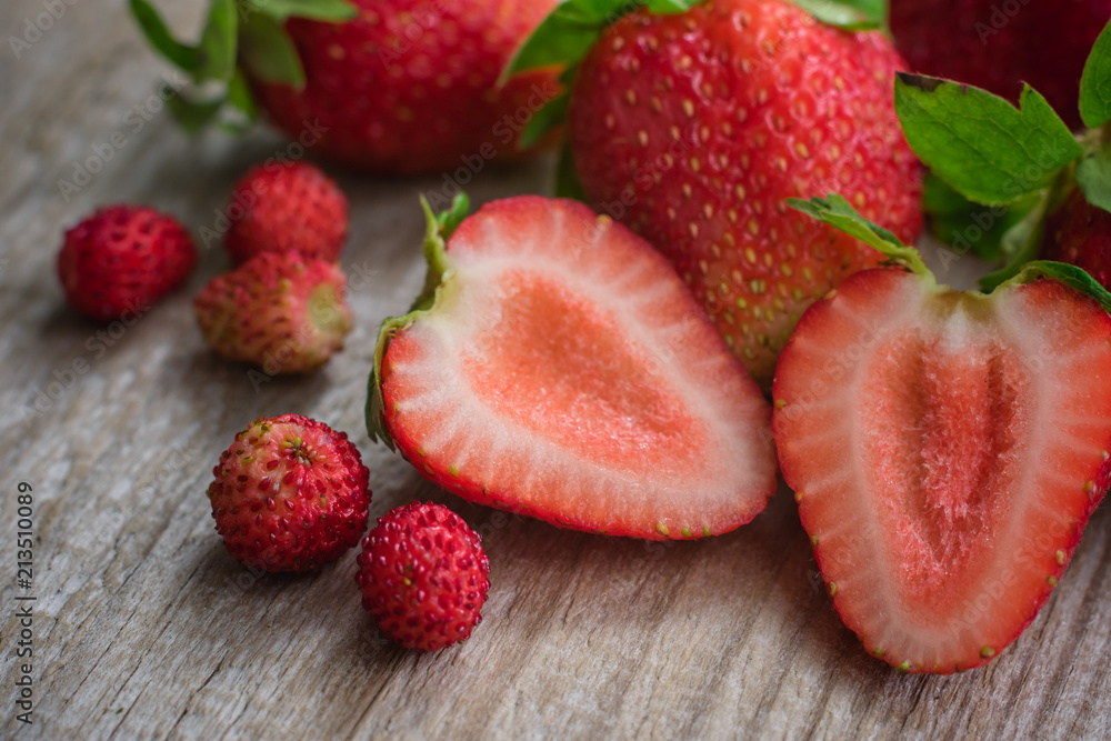 Strawberries on a wooden table.