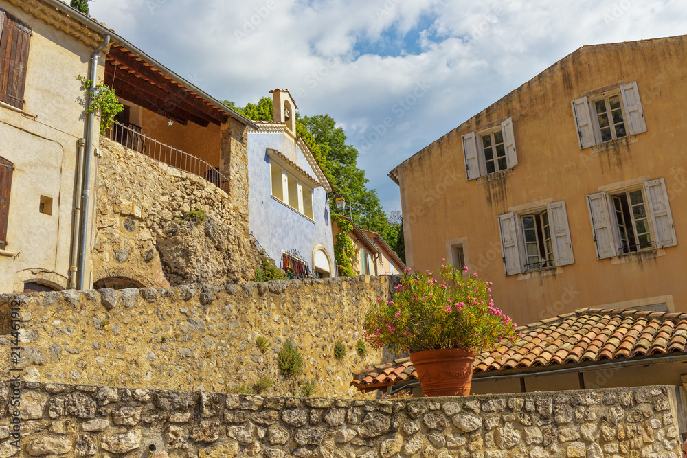 French ancient city in Provence. Connected with the legend of the golden star stretching between the rocks. The city is one of the centers of French porcelain. Moustier St. Marie. France.