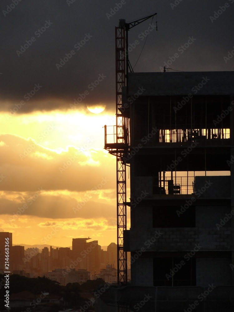 Construction site at sunset