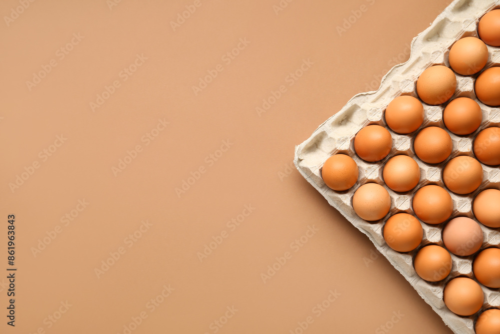 Field with the remaining cut stalks of wheat after harvest on the background of blue sky with clouds in the rays of the evening sun.