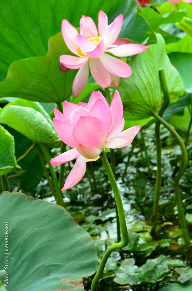 Flowering of the lotus in the estuary, beautiful pink flowers.