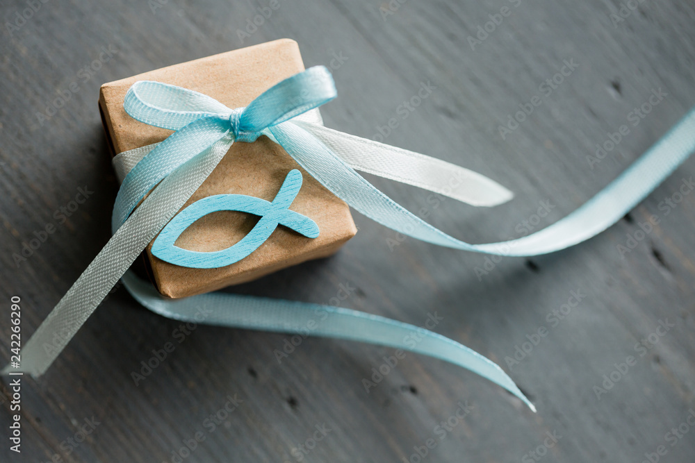 Kleiner Anker auf weißem Holz mit Papierschiffchen