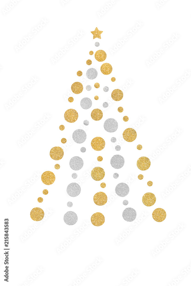 Gold and silver glitter christmas tree paper cut on white background - isolated