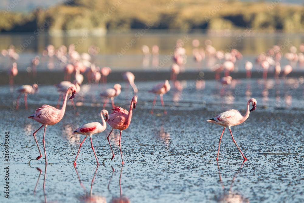 Fenicotteri rosa e fenicotteri minori a Lake Natron in Tanzania