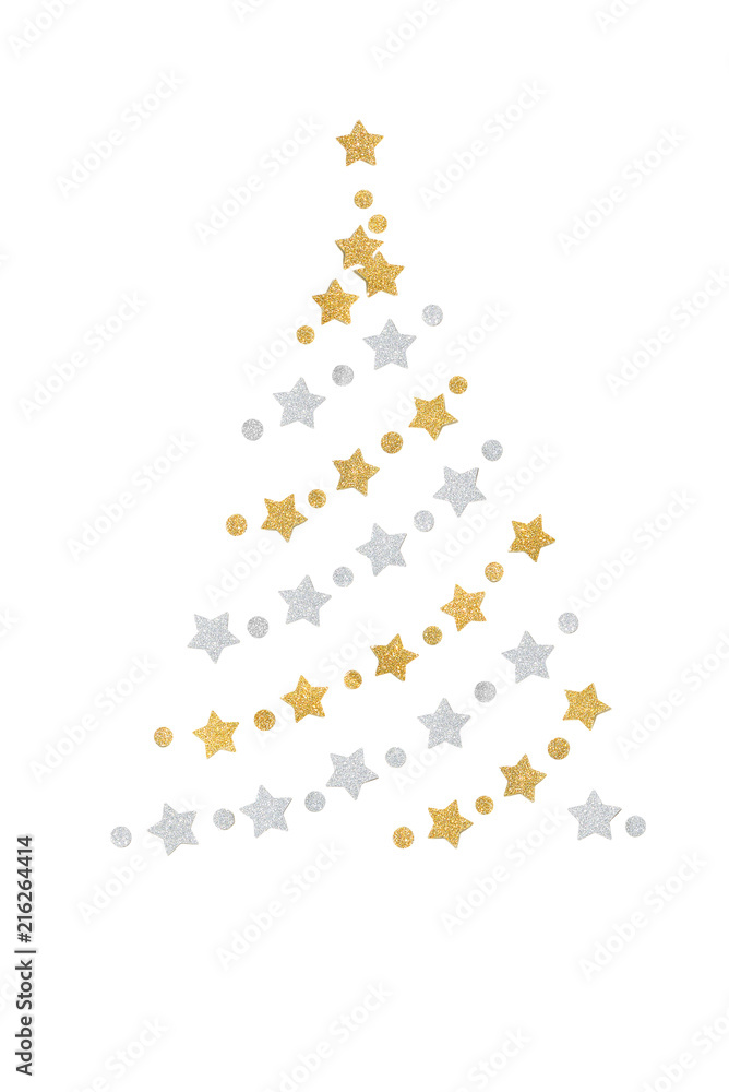 Gold and silver glitter christmas tree paper cut on white background - isolated