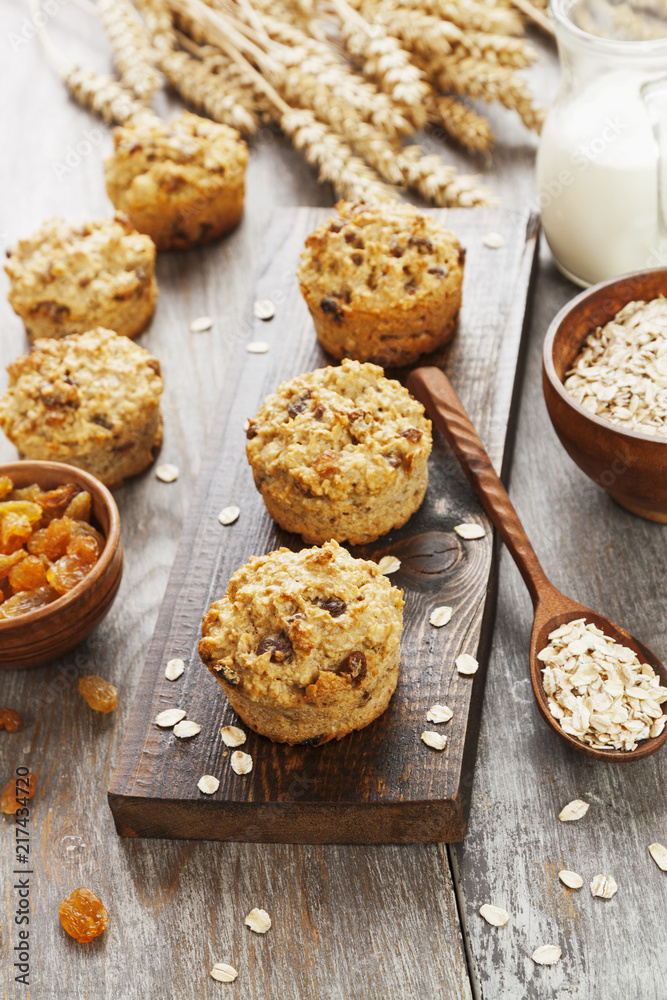 Diet oat muffins with raisins