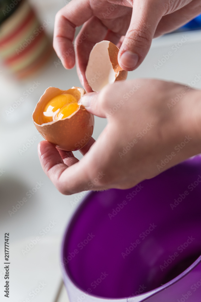 Separate egg yolk and egg white - close-up