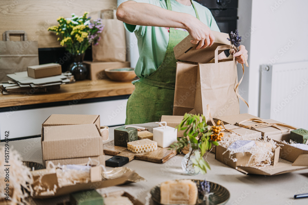 School bag with vivid pink torn paper. Burst hole background. Minimal abstract colorful wallpaper concept.