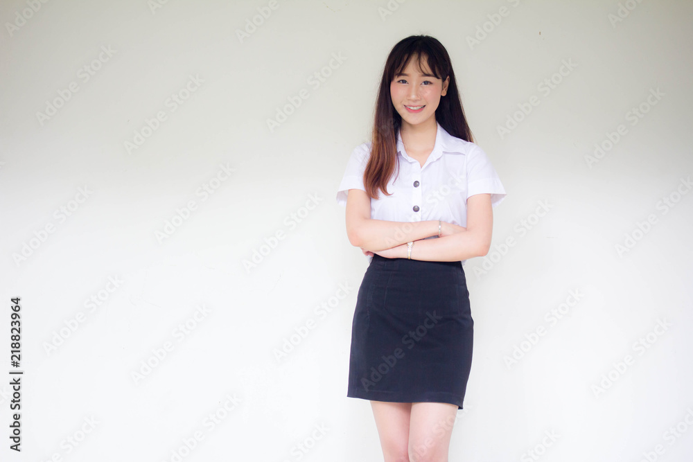 Portrait of thai adult student university uniform beautiful girl relax and smile