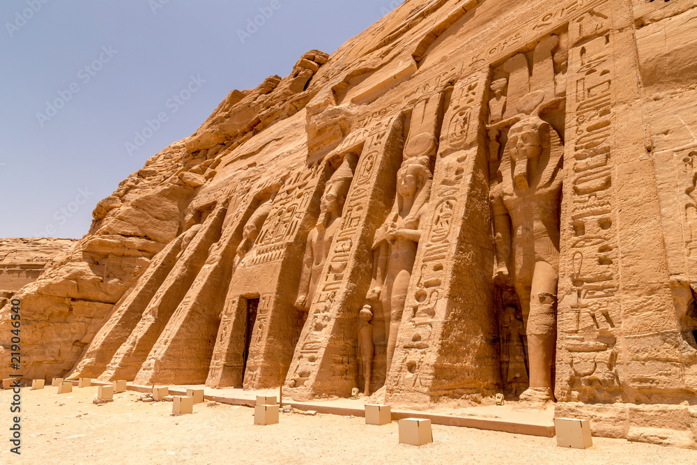Abu Simbel, The Rock Temple in Nubia, Southern Egypt commemorating Pharaoh Ramesses II and his wife Queen Nefertari, Egypt