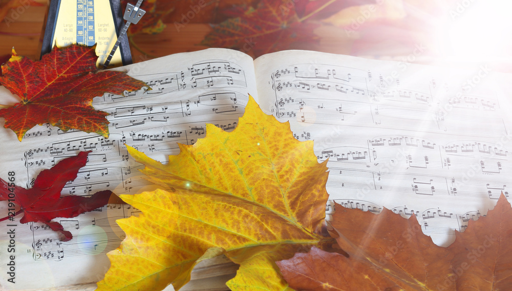 sheet music and autumn leaves