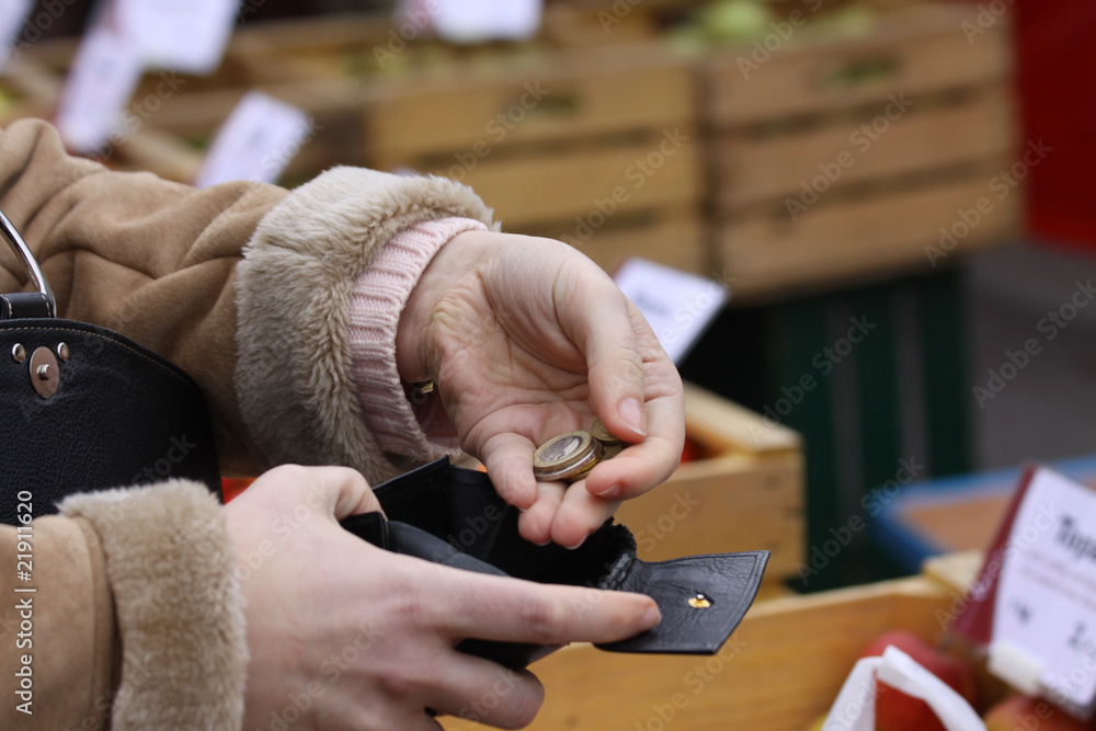 Geld ausgeben auf Markt