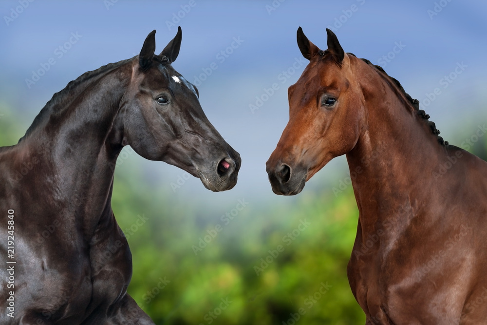 Two horse portrait on natural background