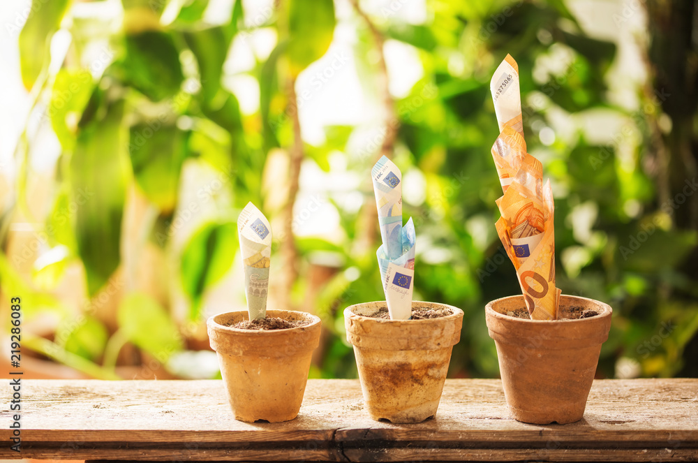 Geld wachsen aus den Blumentöpfen raus