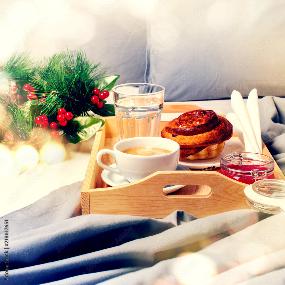 Breakfast Bed Tray Coffee Bun Grey Early Morning