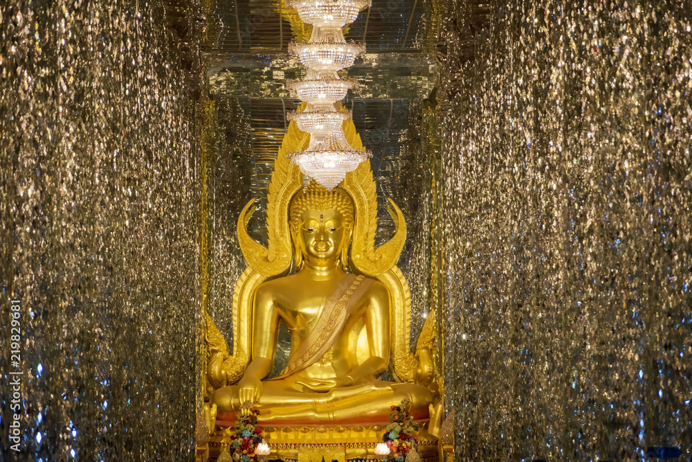 Thailand Golden buddha statue Phra Buddha Chinnarat Wat Tha Sung and tourism landmark in Asia.