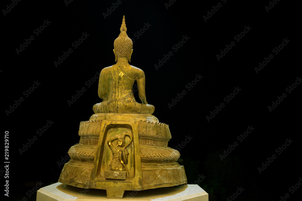 Golden Buddha statue on isolated black background