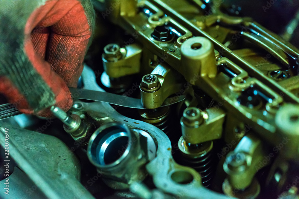 Maintenance check and adjust valve lash in car engine