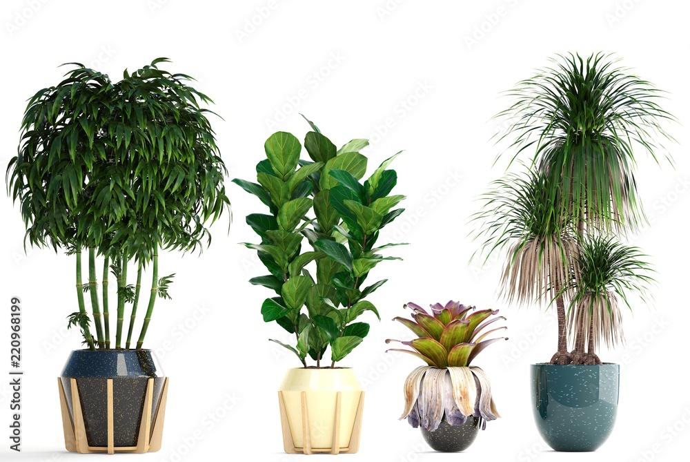 collection of ornamental plants in pots