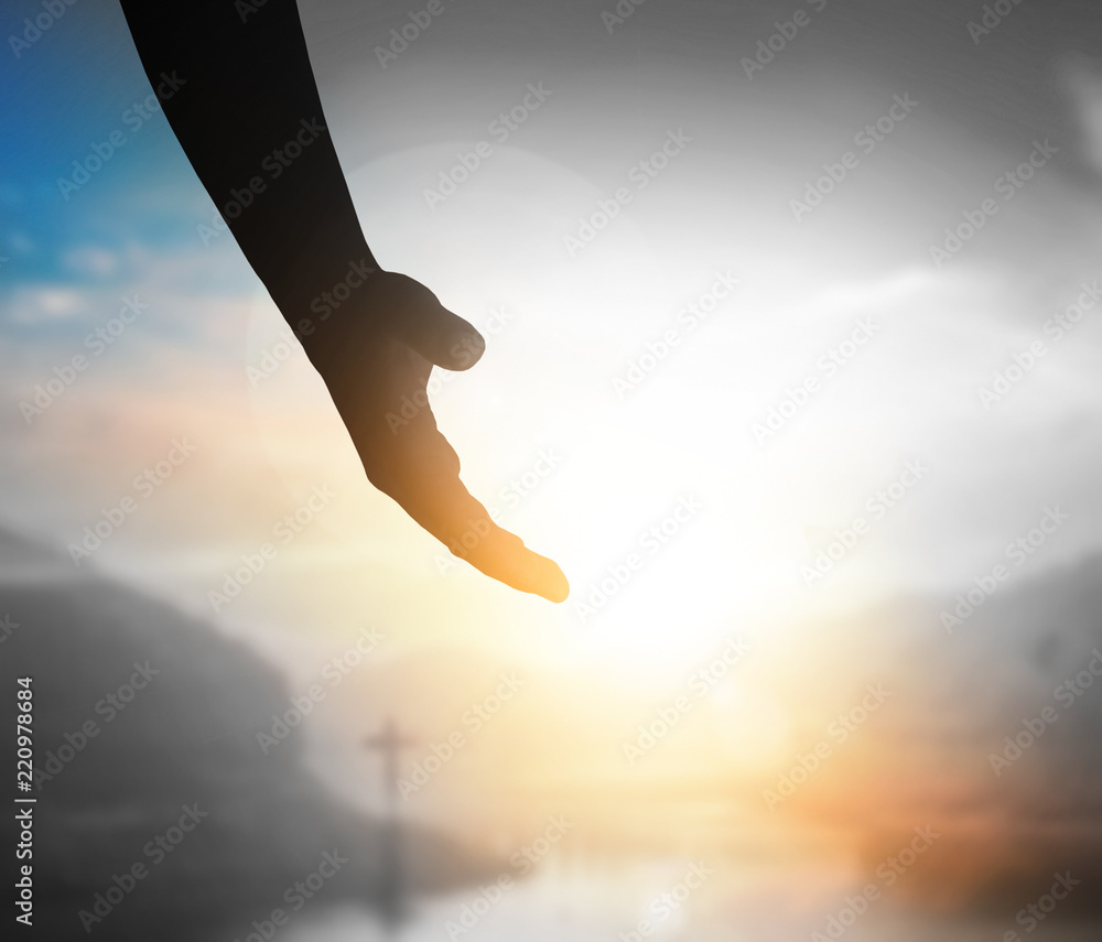 World Peace Day concept:Silhouette of Jesus reaching out hand
