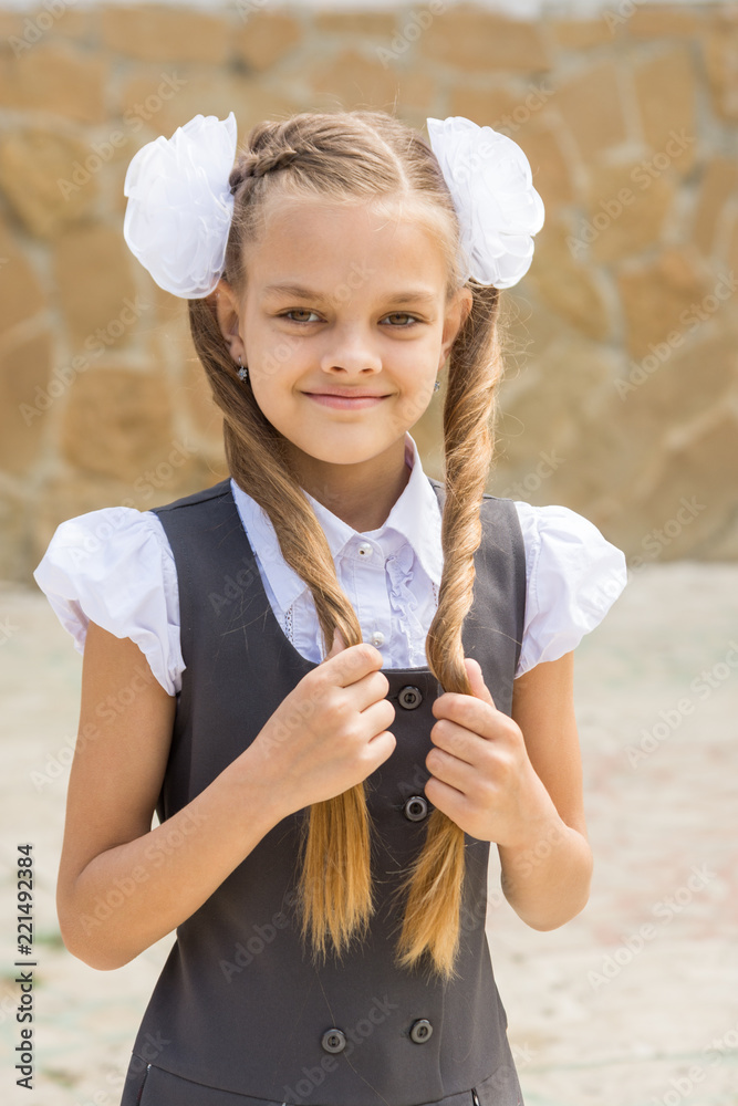Portrait of a schoolgirl on the holiday September 1 at the school