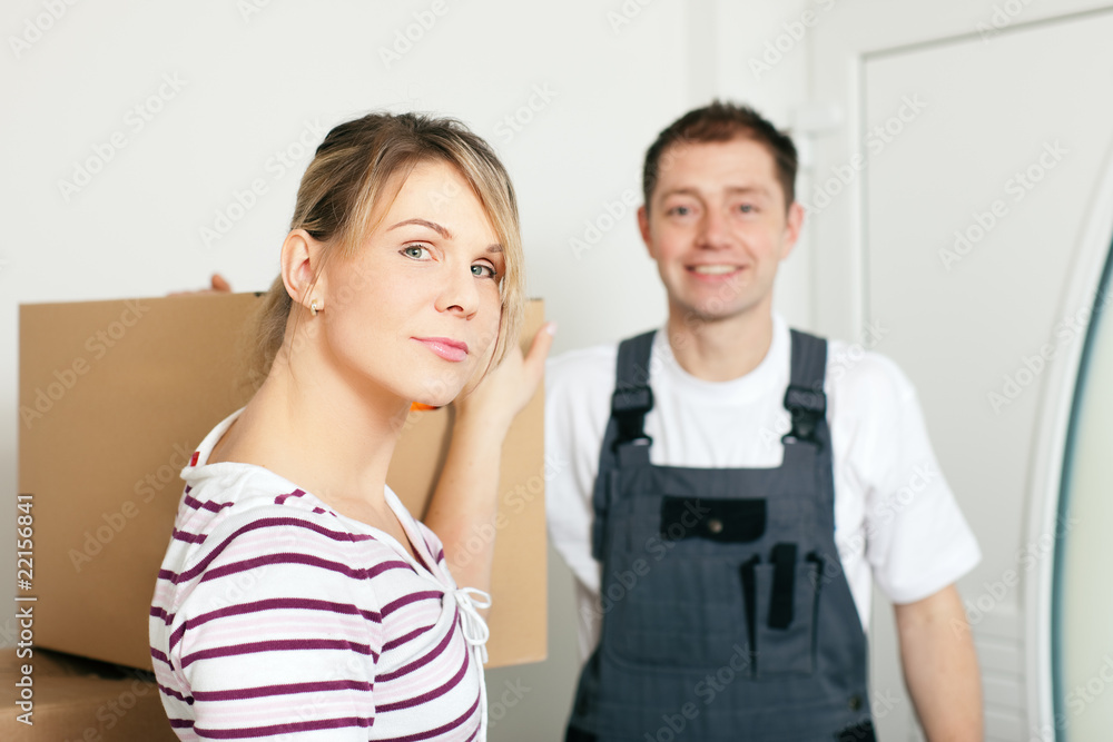 Frau zieht um in ihr neues Haus
