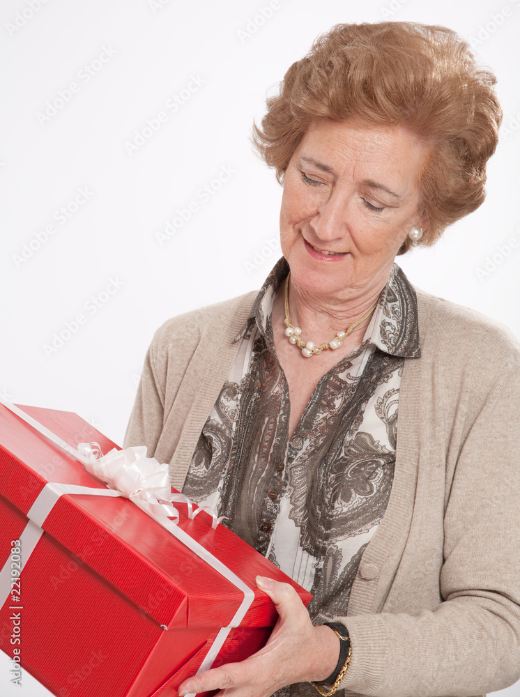 Mature woman receiving a gift