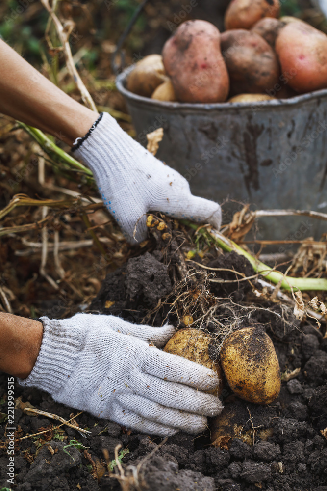 Seasonal harvesting of ripe potatoes in the home garden, close-up