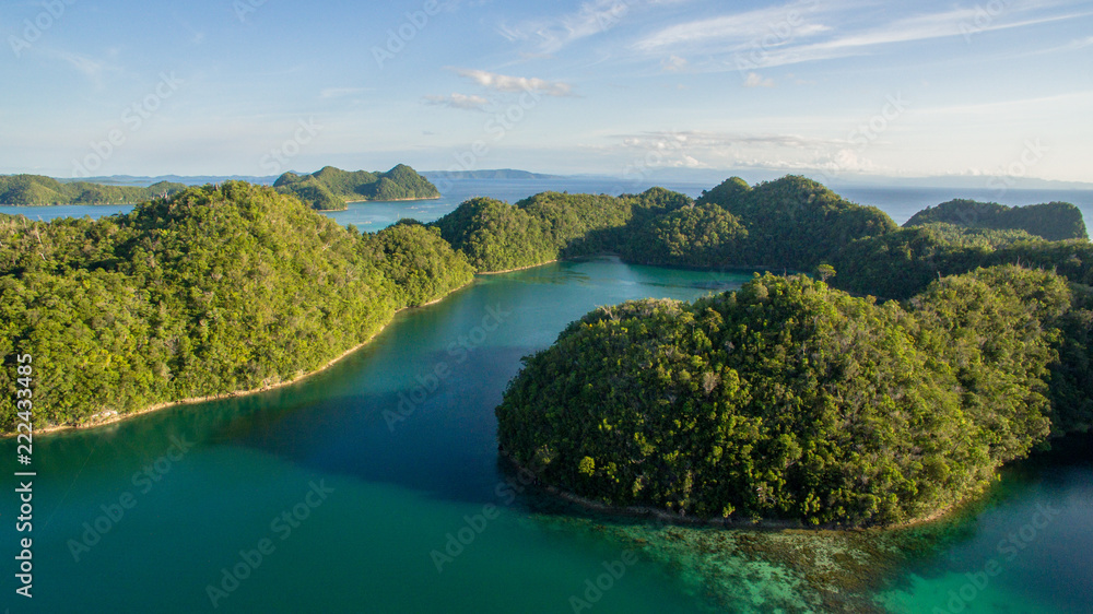 forrest islands aerial view bird super blue lagune siargao philippines horizon ocean
