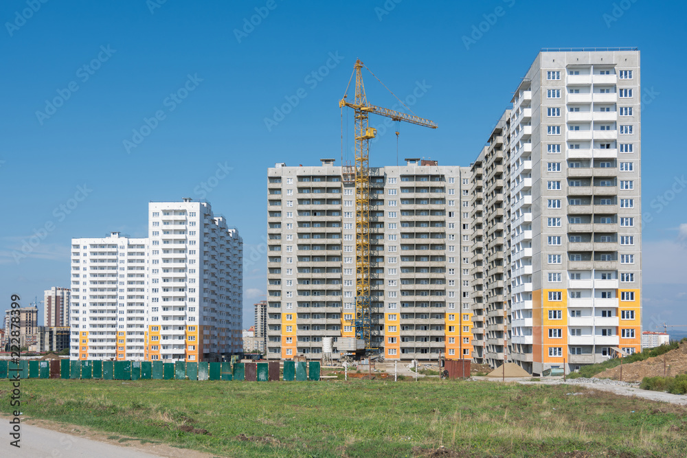 Construction of a residential complex of typical sixteen-storey block houses