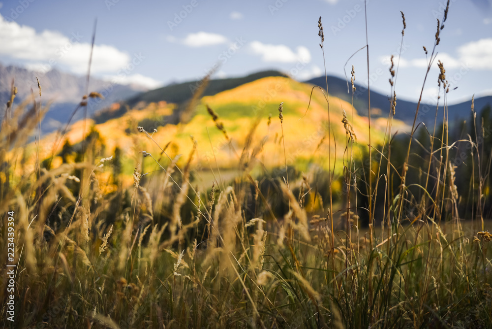 Autumn, landscape view of the Gore Range and Golden Peak in Vail, Colorado.