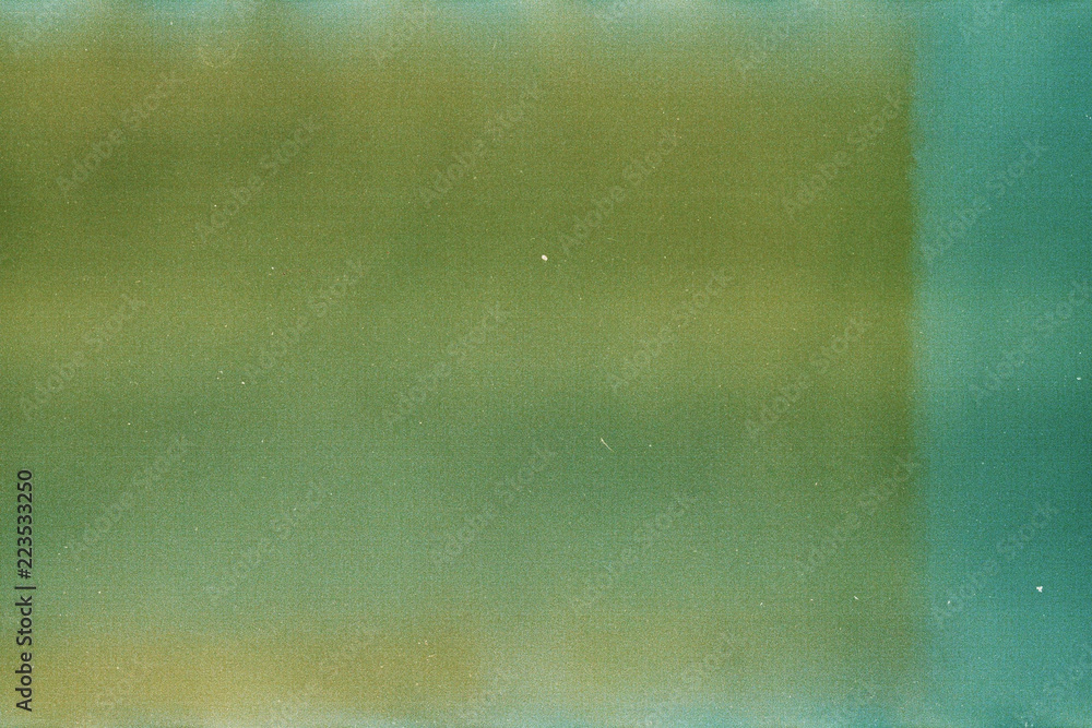 Green and yellow background of the developed film. Edge of the film