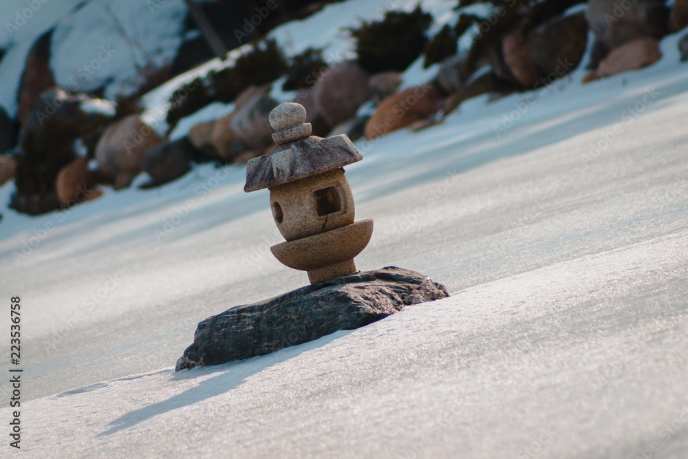 Japanese lantern in winter at the Frederik Meijer gardens in Grand Rapids Michigan