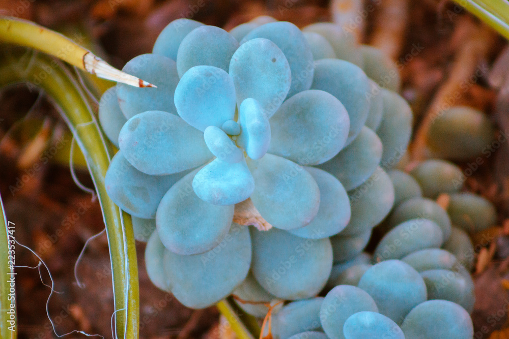 Macro shot of a succulent growing in a greenhouse