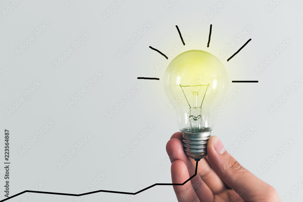 Bulb in hand, concept of idea