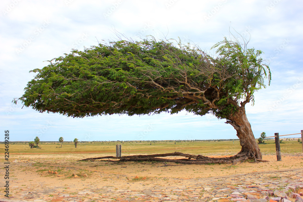 Árvore Penteada, Luís Correa, Piauí, Nordeste do Brasil, balançada pelo vento