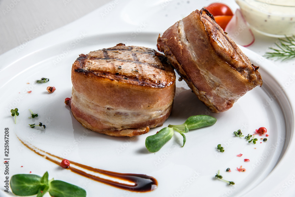 Grilled steak filet mignon wrapped bacon