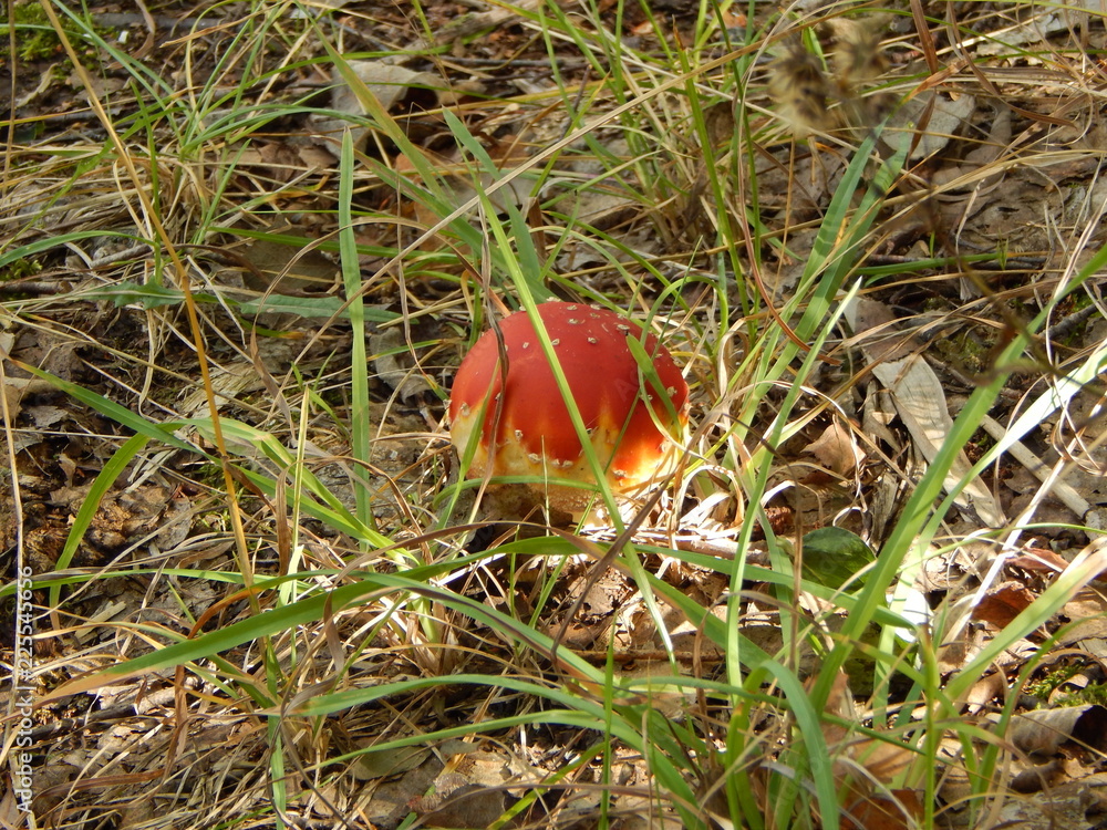 mushroom fly-agaric in a green grass