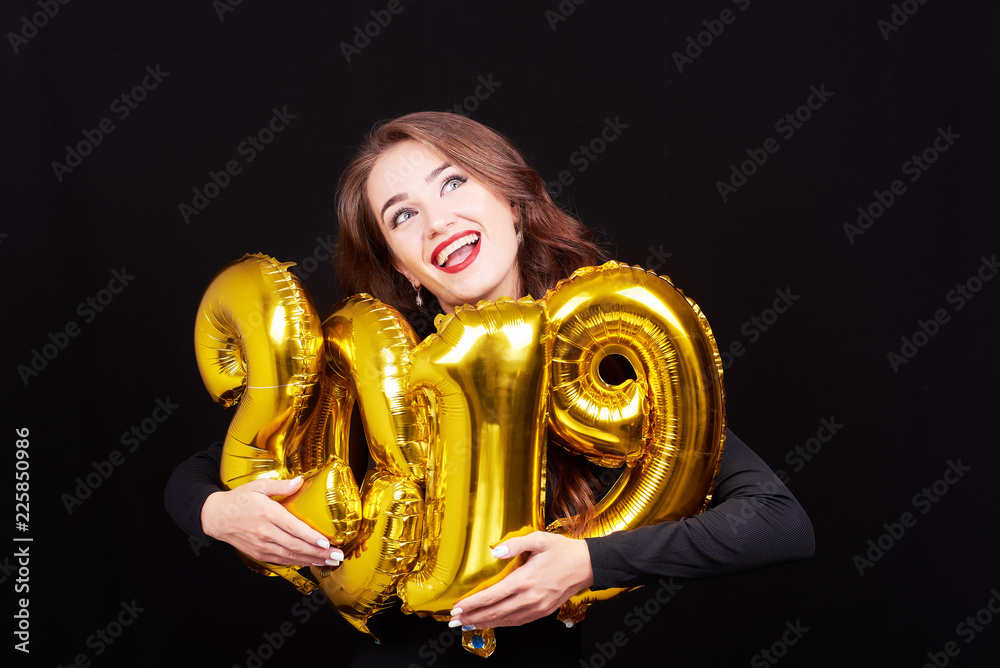 Young woman holding 2019 balloons in hands
