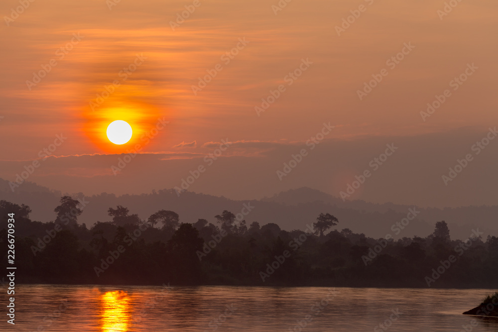 Sunrise at Mekong river between Thai - Laos Beautiful landscape in morning time