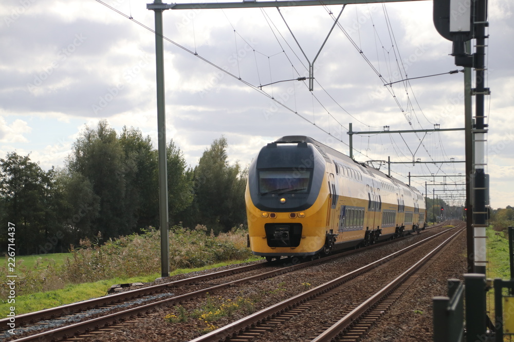 Intercity train at railroad track between Gouda and Rotterdam at Moordrecht.