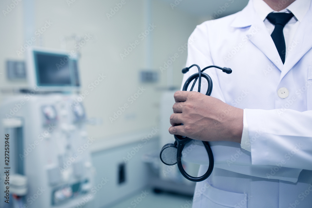 Medical care and healthcare Doctor holding a stethoscope in uniform gown