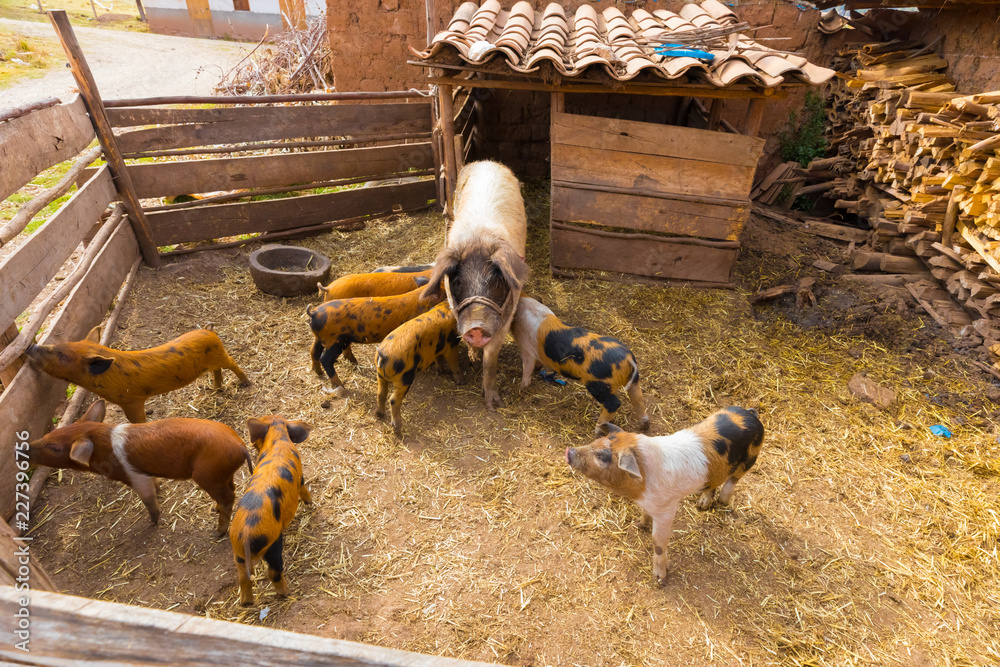 sow and little pigs in the enclosure