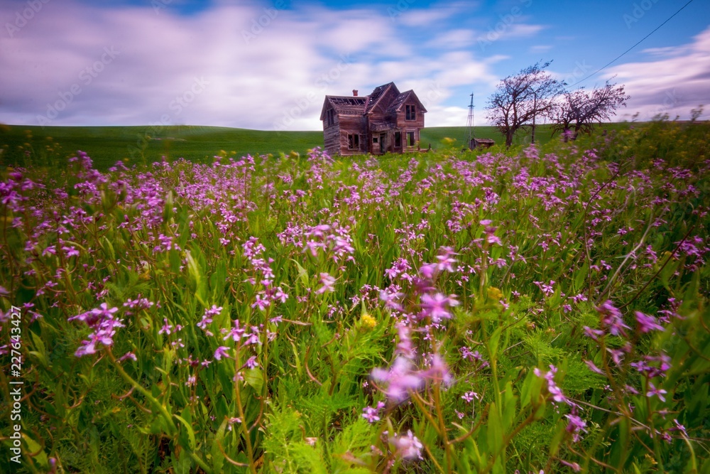 An abandoned picturesque old farmhouse in spring - pacific northwest