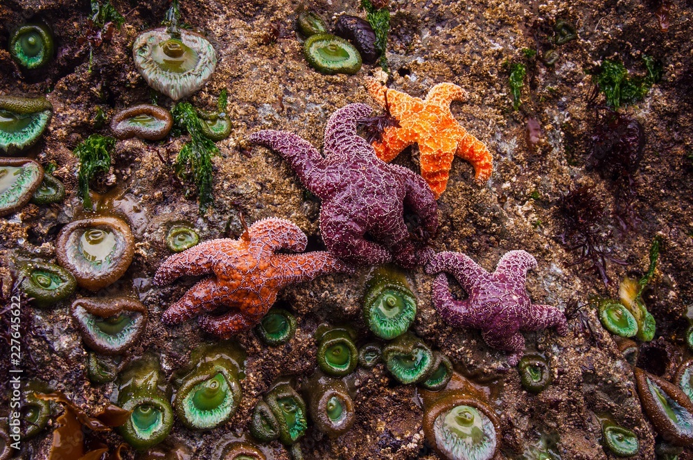 Colorful sea life exposed on rocks at low tide - Oregon coast