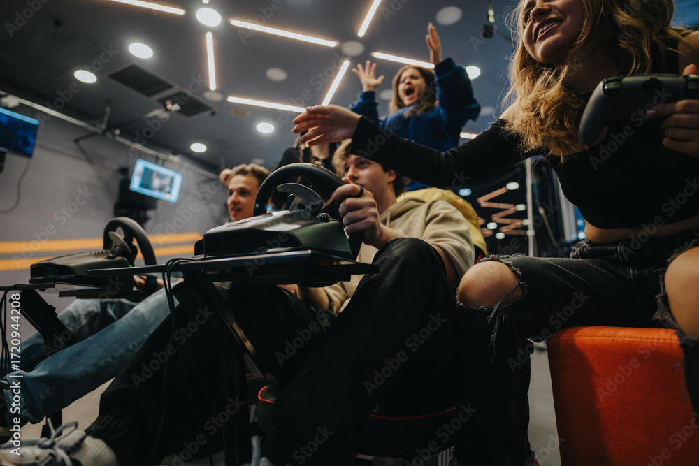 Beautiful, young girls in bright pink and blue wigs, fashionable bikinis, having fun on the pool, best friends, laughing, smiling, party, 20s, sunglasses, rest