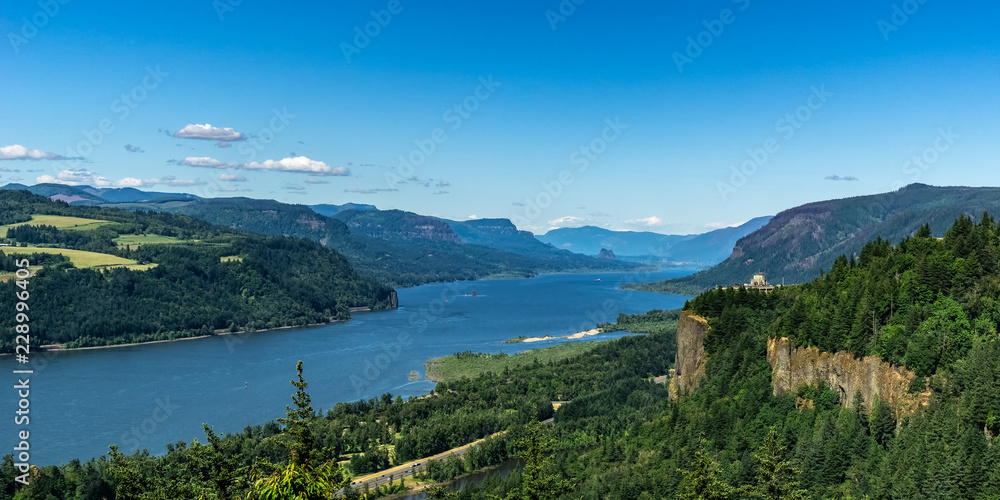 Scenic overlooking view at the Columbia River Gorge from the Portland Women Forum, Oregon, USA.